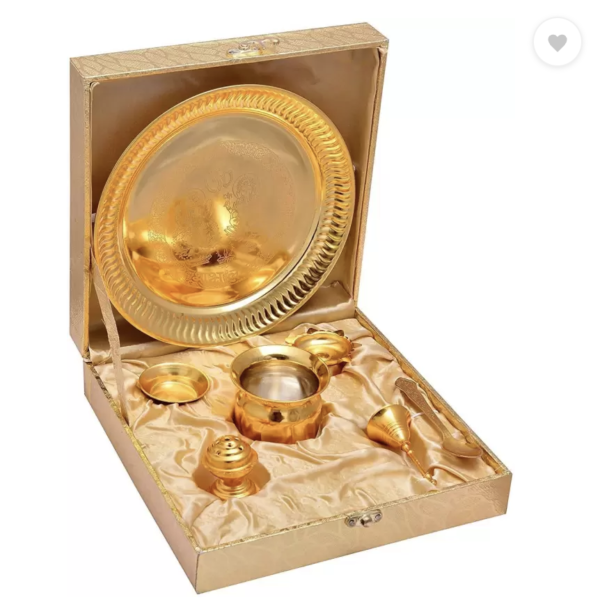 Pujahome Gold Plated Brass Pooja THALI Golden Colour with Golden Box (7 PEC. Golden, 450)